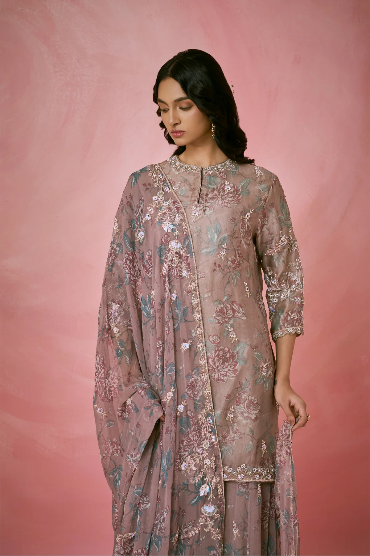 Our Ethereal Organza Layers Sharara set, expertly crafted from a harmonious blend of organza, chiffon, and mul cotton. This exquisite ensemble features a flowy sharara adorned with delicate layers that create a whimsical silhouette, allowing you to move gracefully with every step. The organza adds a touch of opulence, while the soft chiffon and breathable mul cotton ensure comfort throughout your special occasions. The intricate detailing and gentle embellishments evoke a sense of celestial beauty, making this sharara set perfect for weddings, festive celebrations, or intimate gatherings.