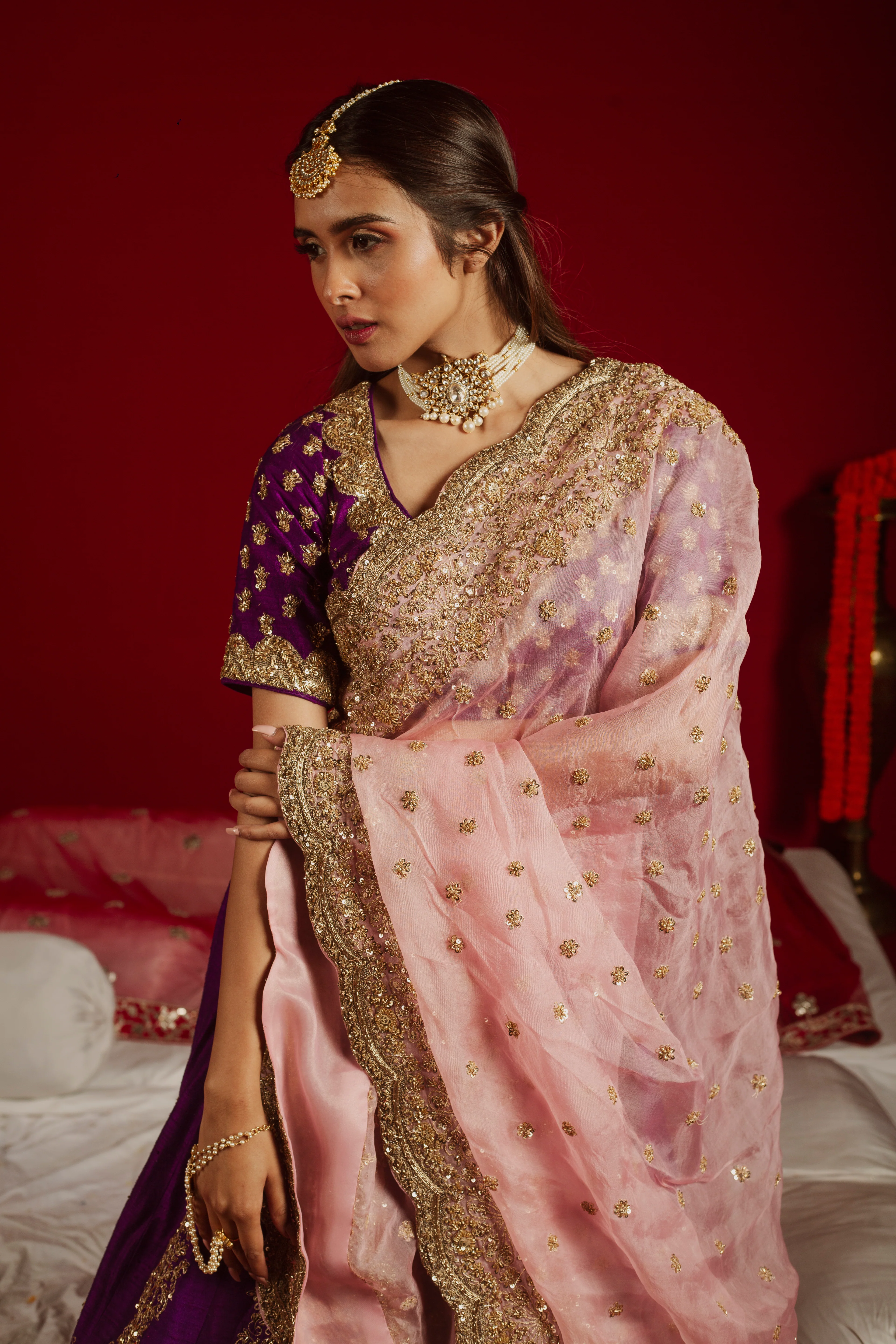 Experience opulence with our Pure Raw Silk and Pure Organza Satin Lehenga Set. This exquisite ensemble merges the richness of raw silk with the graceful allure of organza satin. Ideal for special occasions, the lehenga set seamlessly combines traditional elegance with contemporary style, presenting a timeless and captivating look.