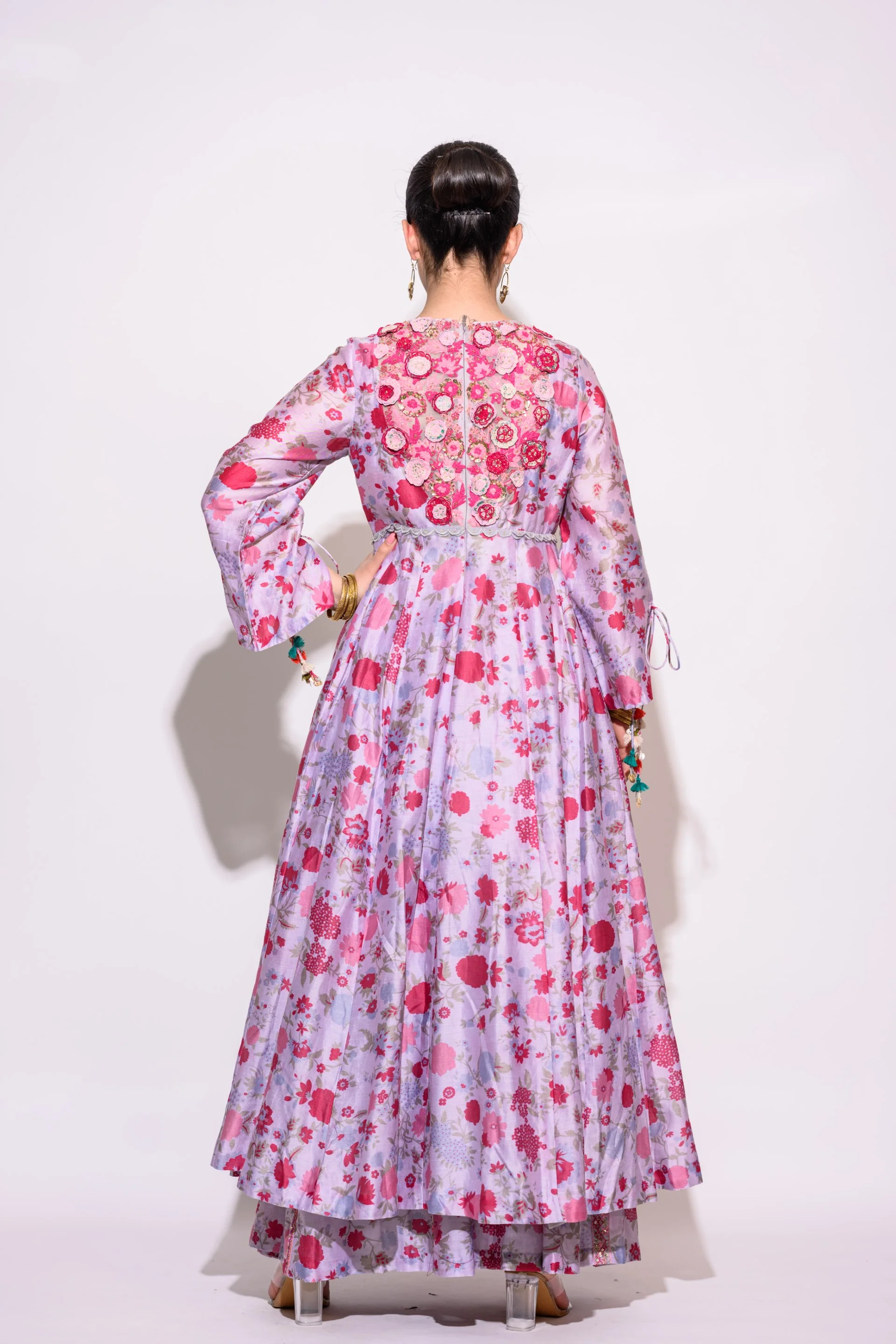 The pink coloured kurti comes with a bold deep v-neckline in silk base. With tassels dangling from the dupatta, it's sure to elevate the look at any given occasion.