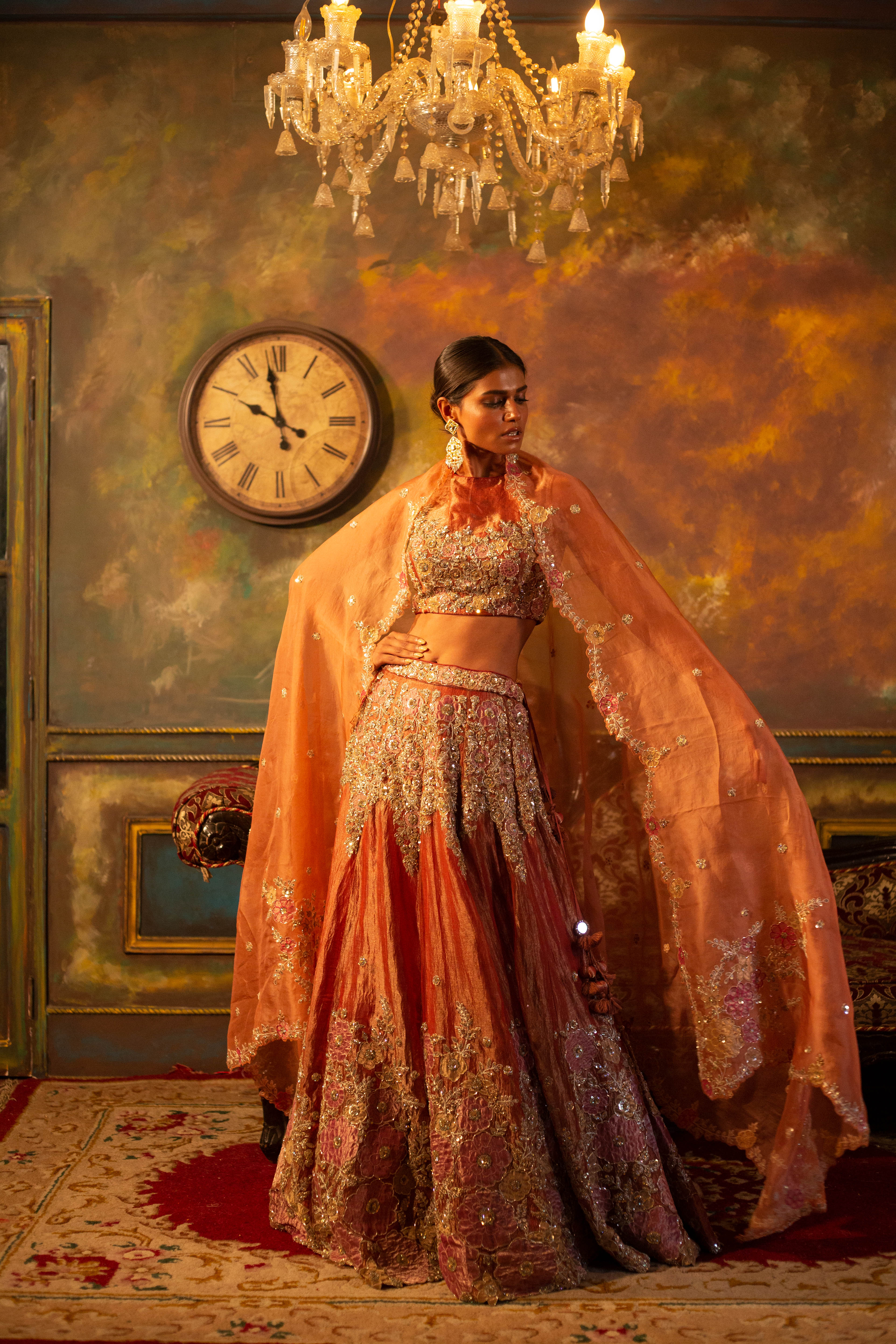 Indulge in unparalleled elegance with this meticulously crafted Lehenga, woven from the finest blend of cotton, organza, and satin. The pièce de résistance lies in the resplendent golden tissue, elevating this ensemble to the zenith of opulence. Each thread is woven with a symphony of sophistication, making this a quintessential addition to your wardrobe. Adorn yourself in the regal allure of this masterpiece, embodying the essence of timeless luxury at every soirée.